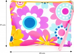 Kolorowa materiałowa kosmetyczka z zamkiem i pętelką utrzyma wszystkie akcesoria w jednym miejscu. Łatwo ją przenosić, chroni zawartość i pomaga utrzymać porządek w domu i w podróży.
