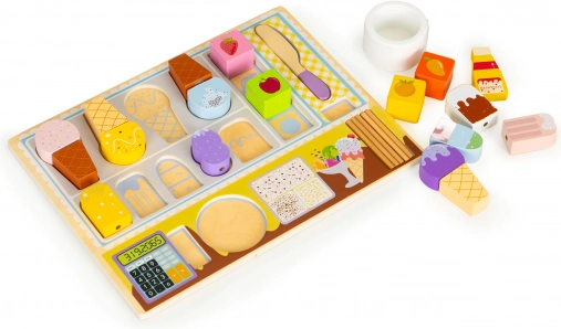 Odkryj magiczny świat lodziarni z tym pięknym drewnianym zestawem od ECOTOYS. Zestaw z 27 elementami jest idealny dla dzieci od 18 miesięcy, wspiera kreatywność, wyobraźnię i umiejętności społeczne. Wysokiej jakości drewniane wykonanie z autentycznymi detalami gwarantuje długą żywotność oraz godziny zabawy i nauki.
