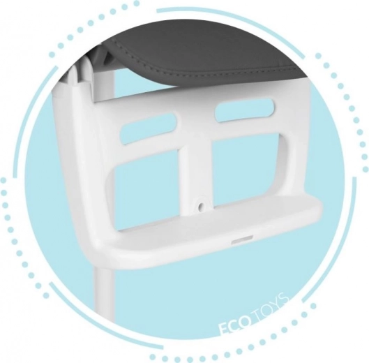 Krzesełko wyposażono w podnóżek, dzięki któremu dziecko może wygodnie oprzeć stopy i czuć się pewnie oraz komfortowo. W razie potrzeby podnóżek można łatwo zdemontować, np. do transportu.