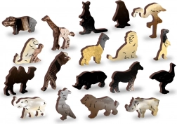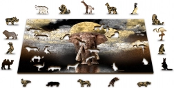Doświadcz magii układania z drewnianymi puzzlami Słonie sny, które dzięki swojej unikalnej strukturze oferują niezwykłe wrażenia. Układaj z 75 elementów, z których 15 jest artystycznie wyciętych w kształty zwierząt i innych motywów.