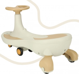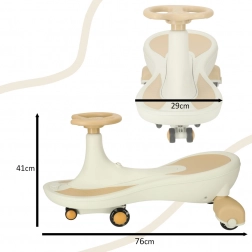 Jeździk grawitacyjny z kołami LED i muzyką, 76 cm, beżowo‑biały, udźwig 100 kg
