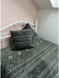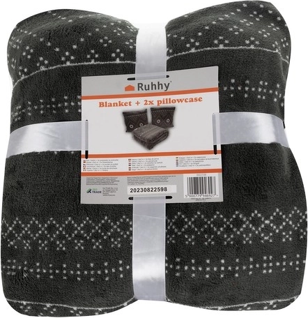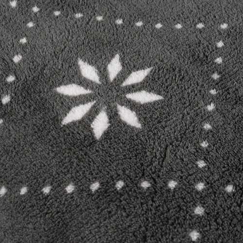 Ten kompletny zestaw w nowoczesnym szarym kolorze z białymi geometryczno-zimowymi wzorami wprowadzi do Twojego domu przytulną atmosferę. Mikrowłókno gwarantuje wyjątkową miękkość, ciepło i niską wagę, dzięki czemu koc jest przyjemny podczas relaksu przy książce, filmie czy filiżance gorącego napoju.