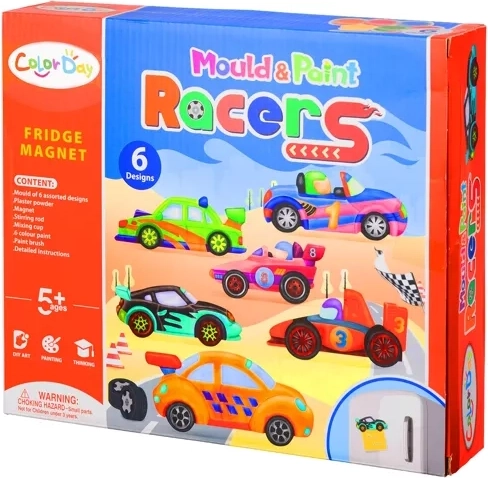 Ten kreatywny zestaw do tworzenia magnesów daje dzieciom radość tworzenia od pierwszego kroku. Wystarczy wymieszać gips z wodą, wlać do formy z motywami wyścigowych autek, pozostawić do stwardnienia, a następnie pomalować dołączonymi farbami. Gotowe magnesy przymocujesz do lodówki lub tablicy i natychmiast rozświetlą dom.