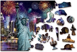 Drewniane puzzle "Nowy Jork w nocy" oferują niezapomniane doświadczenie układania dla wszystkich miłośników puzzli. Każdy z 200 elementów jest precyzyjnie wycięty laserem z wysokiej jakości drewna, zapewniając trwałość i precyzję. Przednia strona elementów zdobiona jest szczegółowymi obrazkami, podczas gdy tylna strona ma wzór tapet dla wyższego estetycznego doświadczenia.