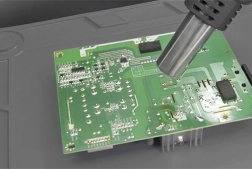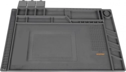 Specjalna mieszanka silikonowa wytrzymuje wysokie temperatury i chroni powierzchnię roboczą podczas lutowania oraz pracy z gorącym powietrzem.