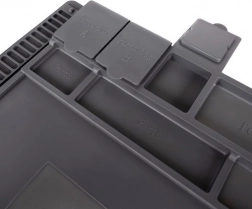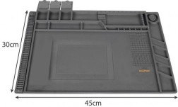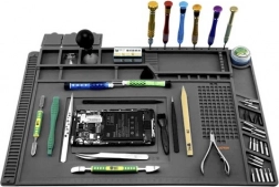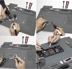 Ta wielofunkcyjna silikonowa mata serwisowa jest idealna do napraw telefonów, laptopów i precyzyjnego lutowania. Dzięki 4 magnetycznym kieszeniom, wydzielonym przegródkom oraz wyznaczonym miejscom na śrubokręty wszystkie drobne części i narzędzia masz zawsze pod kontrolą. Antypoślizgowy materiał utrzymuje wszystko na miejscu nawet przy bardziej wymagających czynnościach.