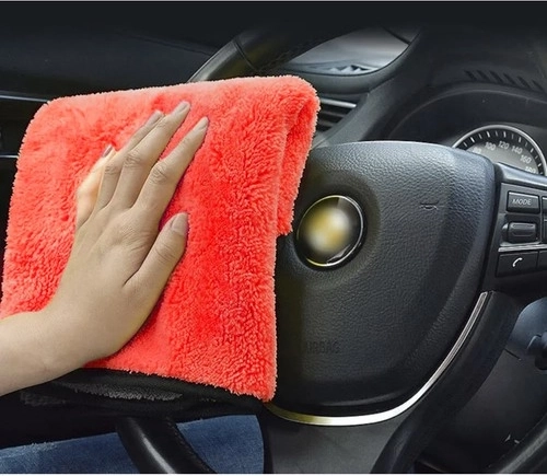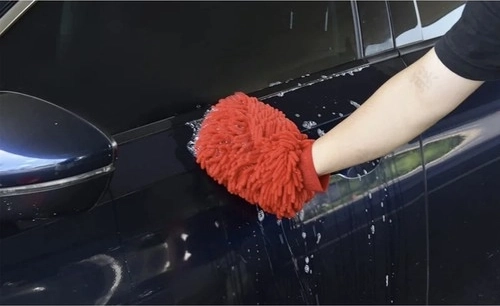 Puszysta rękawica i miękkie ściereczki z mikrofibry doskonale chłoną wodę, delikatnie myją i polerują bez smug i zarysowań.