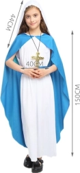 Ten tradycyjny kostium Matki Bożej składa się z długiej białej sukni z niebieskim płaszczem, która subtelnie i sugestywnie wyraża skromność oraz oddanie postaci. Dzięki lekkiemu i miękkiemu poliestrowi dzieci noszą go wygodnie, nie uciska i pozwala na swobodę ruchów podczas występów i zabaw.