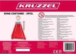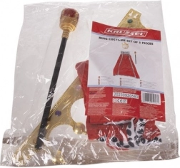 Ten kompletny zestaw w mgnieniu oka przemieni Twoje dziecko w czarującego króla. Płaszcz z miękkiej tkaniny w głębokiej czerwieni jest wykończony czarno-białym futerkiem i wiązany długimi troczkami, co zapewnia wygodne i pewne noszenie. Lekkie berło z czerwonym „klejnotem” doda kostiumowi autorytetu, a elastyczna złota korona z kolorowymi kamykami dopełni królewskiego wyglądu.