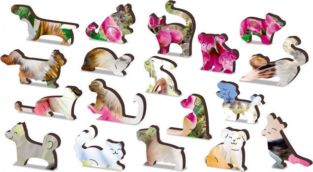 Każdy element jest precyzyjnie wycięty laserowo i oferuje kształty zwierząt lub obiektów, które można wykorzystać także jako samodzielne figurki.