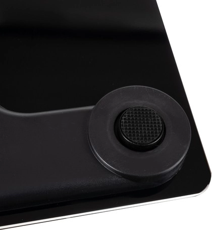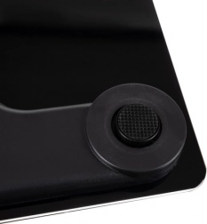 Stylowa czarna platforma z 0,3 cm szkła hartowanego wytrzymuje do 180 kg i zapewnia stabilne oraz bezpieczne użytkowanie w łazience.