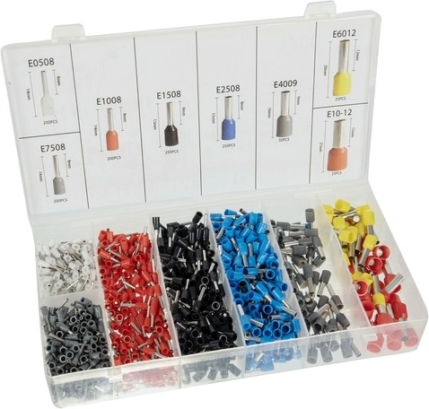 W zestawie znajduje się praktyczny przezroczysty organizer z 1200 sztukami tulejek w ośmiu kolorystycznie rozróżnionych rozmiarach od 0,50 do 10,00 mm², dzięki czemu zawsze masz pod ręką właściwy wymiar. Szczypce sprawdzą się u profesjonalistów i majsterkowiczów, zarówno przy montażu, jak i serwisie instalacji elektrycznych.