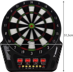 Ciesz się precyzyjną i wciągającą rozgrywką z mocną elektroniczną tarczą TRIZAND dla 1–16 graczy. Oferuje 27 gier i 243 kombinacje, wyświetlacze LCD dla czytelnego wyniku, średnicę pola gry 34,5 cm, regulację głośności oraz zasilanie z sieci lub baterii. W zestawie znajdziesz 6 lotek i 24 zapasowe groty.