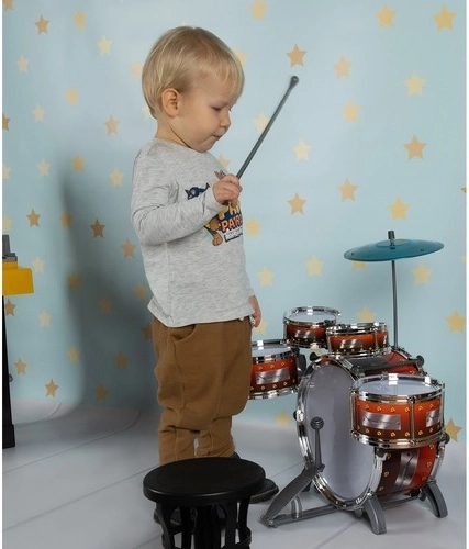 Muzyka odgrywa w rozwój dziecka bardzo ważną rolę. Nie tylko wywołuje pozytywne emocje i dostarcza rozrywki, ale także skupia uwagę i wspiera wyobraźnię. Pierwsze oznaki talentu muzycznego pojawiają się już u bardzo małych dzieci. Sięgnij po zestaw perkusyjny dla swojego malucha! Jeśli twoje dziecko kocha wszystko, co związane z muzyką: granie, taniec i śpiew - będzie to dla niego idealny prezent. Możliwe, że właśnie dzięki bębnom twoje dziecko odkryje wyczucie rytmu, pasję i duży talent muzyczny!