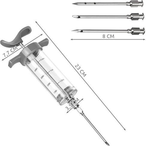 Ta kuchennna strzykawka do wstrzykiwania jest idealna do domowego wędzenia, pieczenia i grillowania. Umożliwia wprowadzanie solanki, wywarów i marynat bezpośrednio do włókien mięsa, co znacząco skróca czas peklowania i zapewnia równomierne nasolenie i doprawienie. Przezroczysty korpus z podziałką w ml ułatwia precyzyjne dozowanie.