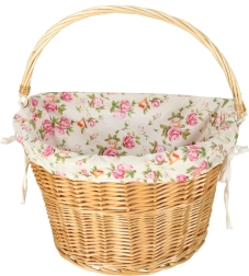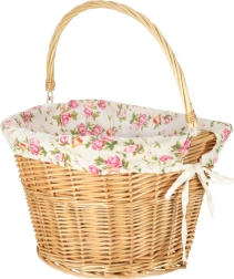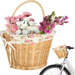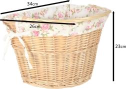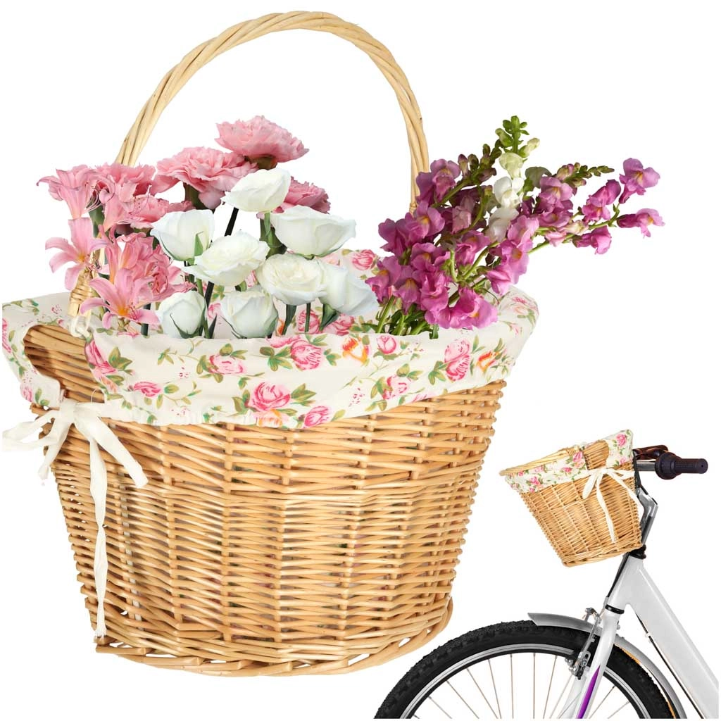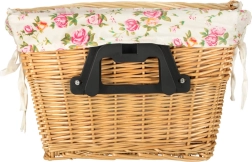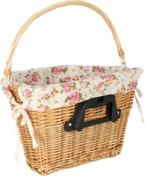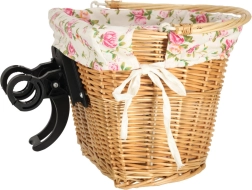 Wiklinowy przedni koszyk na rower z kwiatową wkładką i szybkim mocowaniem click