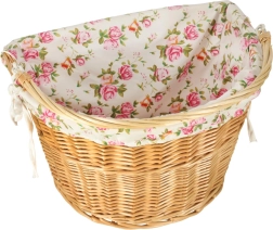 Elegancki wiklinowy koszyk zamieni każdą jazdę w przyjemne doświadczenie. Dzięki przestronnemu wnętrzu bez trudu przewieziesz torebkę, mniejszy plecak czy drobne zakupy. Tekstylna wkładka z kwiatowym motywem nie tylko zdobi, ale także chroni Twoje rzeczy przed zarysowaniami i zabrudzeniami.