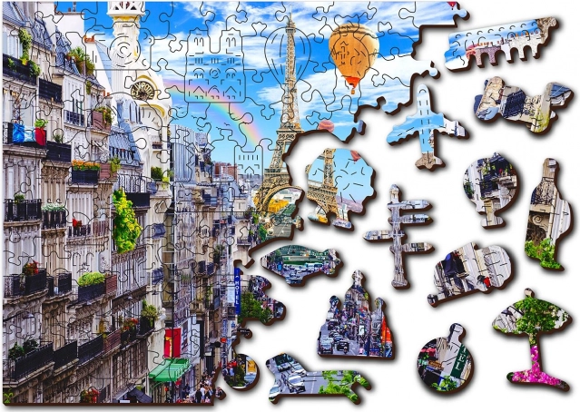 Drewniane puzzle Ruchliwy Paryż od WOODEN CITY są unikalne swoją dwustronną konstrukcją i specjalnie ukształtowanymi elementami, które ożywiają całą scenę podczas układania. Układanie jest bardziej wymagające z powodu różnorodnych kształtów elementów, ale jednocześnie bardziej zabawne. Stanowi wyzwanie nawet dla doświadczonych entuzjastów układania.