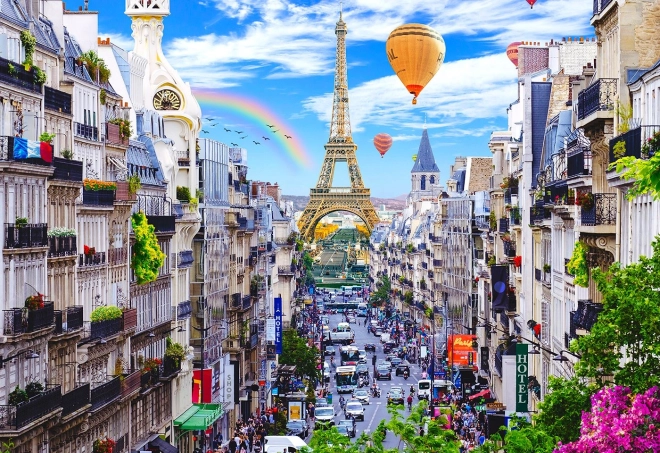 Obie strony puzzli gwarantują odmienne doświadczenie. Z jednej strony zachwyci Cię kolorowy motyw Paryża. Z drugiej możesz polegać na powtarzających się wzorach do układania według kształtów.