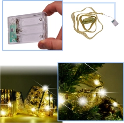 Nasza złota LED wstążka oferuje wszechstronne możliwości dekoracji dzięki swojej elastyczności i zasilaniu bateryjnemu, co umożliwia umieszczenie wstążki nawet w miejscach bez dostępu do prądu.