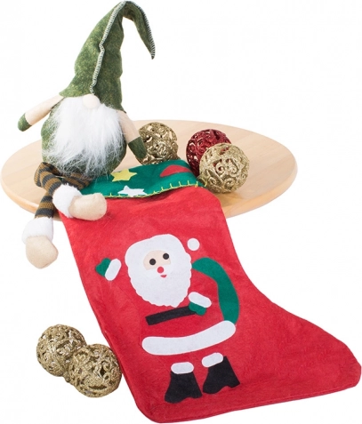 Stwórz w domu prawdziwie świąteczny nastrój z dekoracyjną skarpetą świąteczną. Praktyczny rozmiar pomieści czekoladki, orzechy i drobne zabawki, a pętelka zapewni łatwe zawieszenie na kominku, ścianie lub drzwiach. Filcowy materiał jest przyjemny i lekki, dzięki czemu skarpeta dobrze się układa i ładnie trzyma.