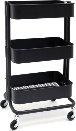 Multifunkcyjna, mobilna, trzypoziomowa szafka pozwoli doskonale wykorzystać wolną przestrzeń w domu, biurze, garażu, salonie fryzjerskim. Dzięki prostemu wzornictwu jest szafka uniwersalna i praktyczna. Multifunkcyjna szafka na kółkach świetnie sprawdzi się w kuchni lub spiżarni jako dodatkowe miejsce na pojemniki z żywnością, słoiki czy środki czystości. Dzięki trzem koszom zyskasz ogromne możliwości przechowywania. Produkt z powodzeniem sprawdzi się w łazience, ułatwiając organizację kosmetyków, rolek papieru toaletowego, ręczników i środków do sprzątania. Metalowa szafka może również stanowić ciekawy dodatek do biura lub piwnicy. Multifunkcyjny regał ma cztery kółka, które zapewniają łatwe przemieszczanie w razie potrzeby. Produkt wykonano z wysokiej jakości tworzywa, które gwarantuje wytrzymałość, stabilność i odporność.
