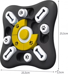 - Wiele przegródek - Pies odkrywa smakołyki w każdej przegródce, podczas gdy środkowe puzzle mogą być obracane o 360 stopni i przyciągają dźwiękami, które wydają.