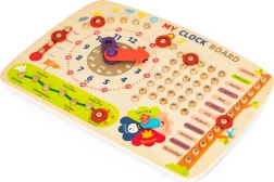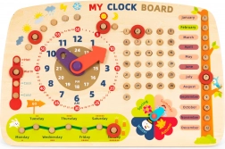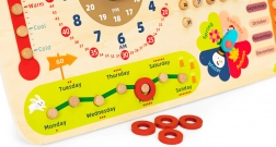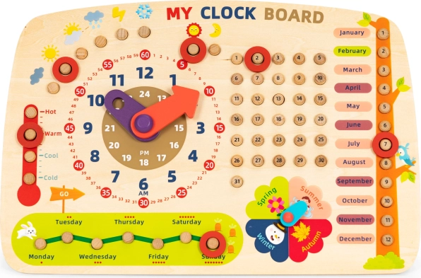 Tablica umożliwia dzieciom naukę dni tygodnia, miesięcy i pór roku, co jest świetnym sposobem na rozwijanie zdolności manualnych poprzez zabawę.