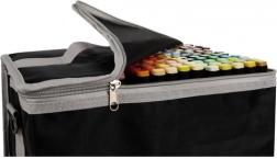 Tekstylne etui z uchwytem i zamkiem chroni markery w podróży. Organizer utrzymuje idealny porządek i szybki dostęp do wszystkich odcieni.