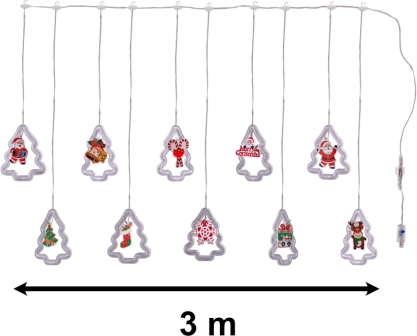 Ta świąteczna kurtyna LED to idealna dekoracja na okno, ścianę lub ościeżnicę drzwi. Dzięki długiemu przewodowi zasilającemu i złącz u USB łatwo podłączysz ją do zasilacza, powerbanku lub laptopa. Ciepłe białe światło oraz kolorowe grafiki Mikołaja, reniferów i śnieżynek nadadzą wnętrzu wyjątkowego, magicznego charakteru.