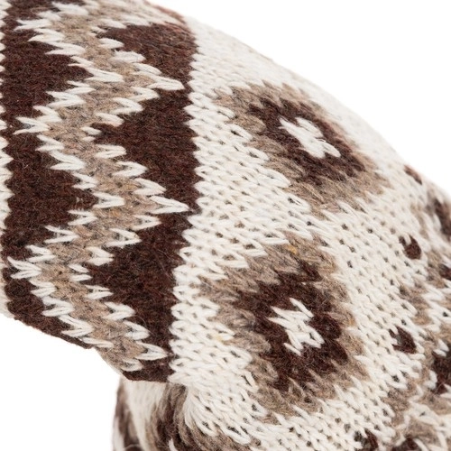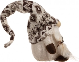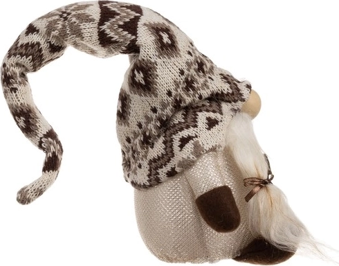 Krasnoludek z dzianinowym wzorem na czapce i sztucznym futrem oferuje przytulny, rustykalny wygląd idealny do świątecznego dekoru.
