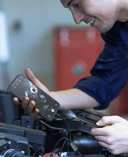 Wytrzymały kabel trzyma kształt i pomaga badać rury, szyby oraz komorę silnika. Dotrzesz tam, gdzie zwykła kamera nie sięga.