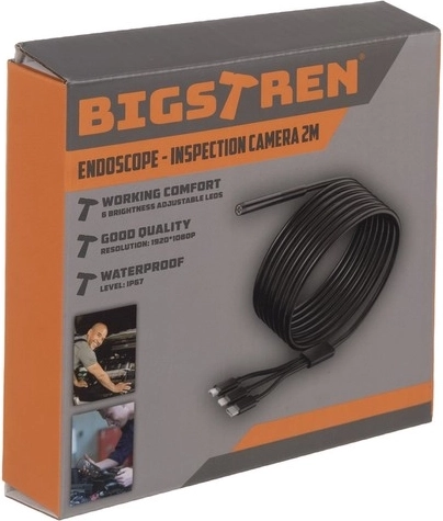 Kompaktowa kamera endoskopowa BIGSTREN do telefonów oferuje Full HD (1920×1080) obraz, 2 m półsztywny przewód, 8 regulowanych diod LED oraz wymienne końcówki (haczy k, magnes, lusterko). Dzięki wodoodporności IP67 i szerokiej kompatybilności z Android i iOS poprzez aplikację ANESOK łatwo zbadacie rury, komorę silnika i trudno dostępne miejsca.