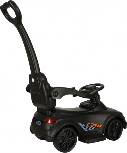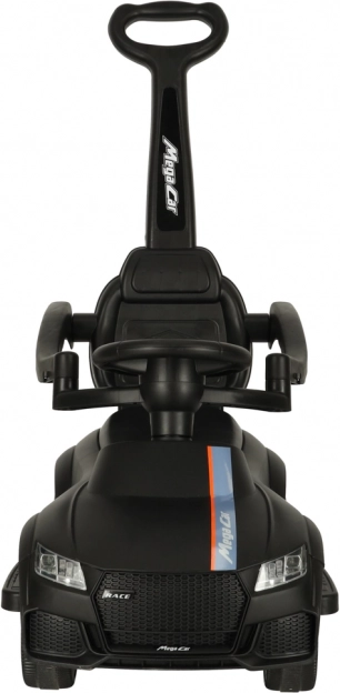 Czarny jeździk–pchacz 3w1 rośnie razem z dzieckiem od 12 miesięcy: oferuje rączkę prowadzącą dla rodziców, barierki bezpieczeństwa i oparcie na pierwsze przejażdżki oraz możliwość stopniowego demontażu do samodzielnej jazdy odpychanej. Realistyczne efekty świetlne i dźwięki (na 3× AA) zamieniają każdą jazdę w świetną przygodę.