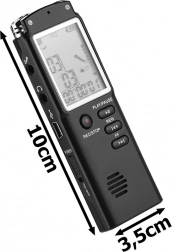 Dyktafon jest mały, lekki i łatwy do przenoszenia dzięki wymiarom 10 cm x 3,5 cm, co czyni go idealnym towarzyszem w podróży.