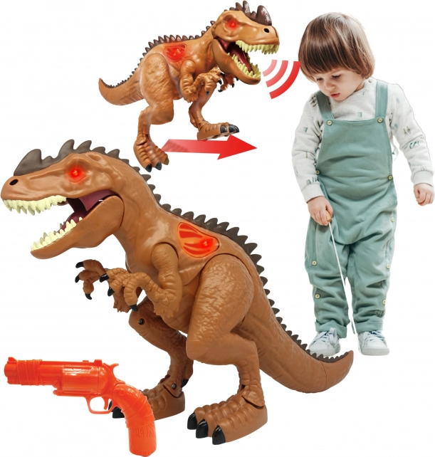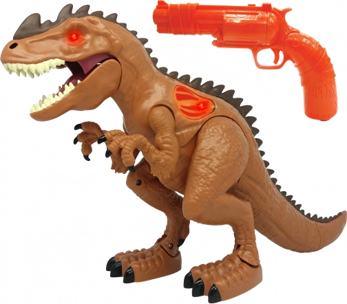 Zestaw zawiera strzelającego dinozaura i pistolet.