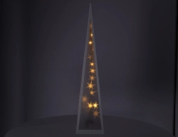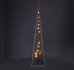 Ozdoba wykonana jest z plastiku z białą metalową ramą, wypełnioną diodami LED w kształcie gwiazdek.