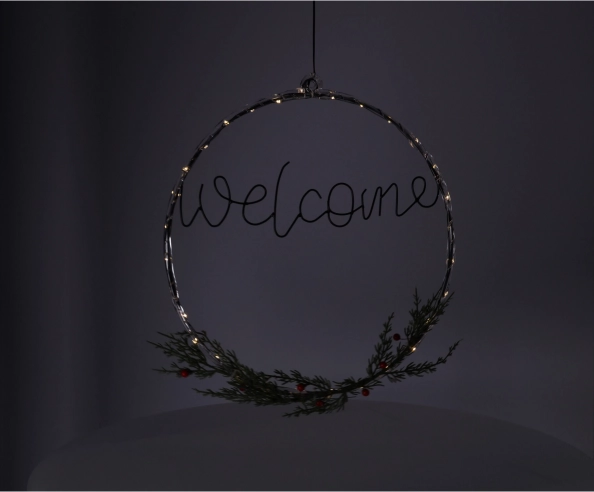 Świąteczna girlanda LED „WELCOME” to minimalistyczny i nowoczesny, przykuwający wzrok element do Twoich drzwi wejściowych lub na ścianę.