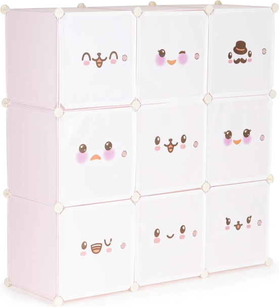 Modułowa dziecięca szafa z 9 półkami ModernHome – Różowa