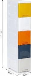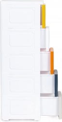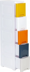 Utrzymuj porządek stylowo i bez wysiłku. Ten wszechstronny plastikowy regał z pięcioma kolorowymi szufladami oferuje dużo miejsca na zabawki, kosmetyki i drobiazgi domowe. Biała rama wygląda czysto i nowocześnie, szuflady z profilowanymi uchwytami wygodnie się wysuwają, a blokady zapobiegają ich przypadkowemu wypadnięciu.