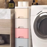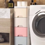 Ten wąski plastikowy regał z pięcioma wysuwanymi szufladami zapewnia sprytne i przejrzyste przechowywanie zabawek, kosmetyków oraz drobiazgów w domu. Dzięki kółkom łatwo przesuniesz go tam, gdzie jest akurat potrzebny, a profilowane uchwyty na froncie szuflad gwarantują wygodne otwieranie.
