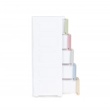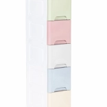 Za bezpieczne użytkowanie odpowiadają blokady szuflad, które zapobiegają ich niepożądanemu wysunięciu — doskonałe rozwiązanie do przestrzeni, w której poruszają się dzieci. Wytrzymały plastik i czysta biała rama z pastelowymi szufladami nadają wnętrzu nowoczesny charakter.