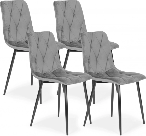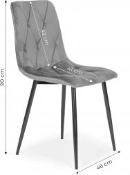 Odśwież swoje wnętrze nowoczesnymi krzesłami łączącymi ponadczasowy design i funkcjonalność. Miękki welurowy pokrowiec z pikowaniem wygląda luksusowo, a solidne stalowe nogi gwarantują stabilność i długą żywotność. Krzesła sprawdzą się w jadalni, salonie, kuchni, a także w kawiarniach, restauracjach czy biurach.