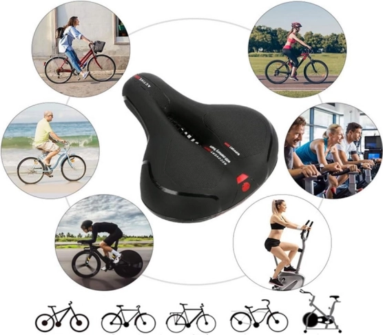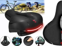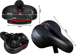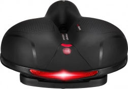 To ergonomiczne siodło rowerowe wyróżnia się miękką wyściółką z elastycznej pianki oraz trwałym tworzywem sztucznym, odpornym na warunki atmosferyczne.