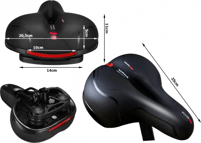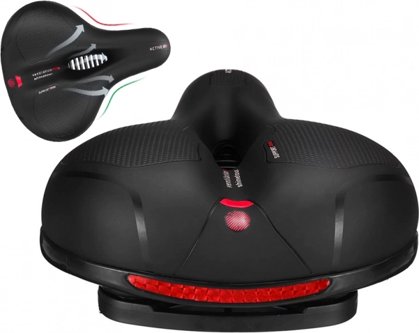 Dla bezpieczeństwa siodło posiada pasek odblaskowy, poprawiający widoczność rowerzysty przy ograniczonej widoczności.