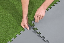 Wysokiej jakości materiał chroni podłogę lub trawnik przed uszkodzeniem. Świetny wybór dla podłoży basenów lub przestrzeni do ćwiczeń. Maty dzięki swoim interaktywnym brzegom są łatwe w montażu, co umożliwia elastyczne użycie.