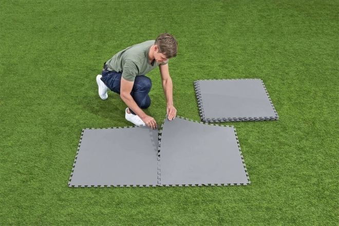 Mata piankowa Bestway jest perfekcyjna do ochrony i wygody zarówno we wnętrzach, jak i w ogrodzie. Każda część ma wymiary 78 x 78 cm a zestaw dziewięciu części pokrywa powierzchnię 5,45 m².