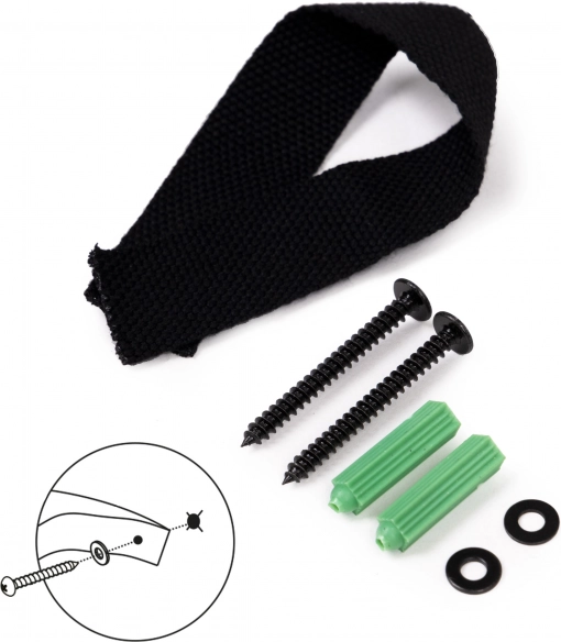 W zestawie znajduje się taśma i śruby do przymocowania do ściany – większa stabilność i bezpieczeństwo w domu z małymi dziećmi.
