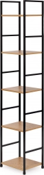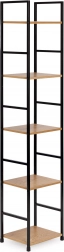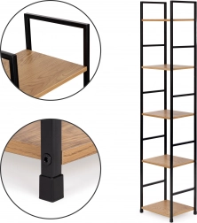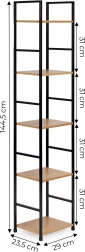 Ta nowoczesna półka w industrialnym stylu LOFT jest idealna zarówno do mniejszych, jak i większych wnętrz. Wąska forma oszczędza miejsce, a pięć półek zapewnia dużo przestrzeni na książki, dekoracje, rośliny i akcesoria łazienkowe. Malowana proszkowo metalowa rama gwarantuje stabilność i długą żywotność, a półki z MDF z dekorem drewna nadają ciepły, naturalny wygląd.