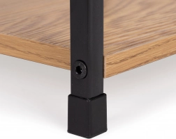 Malowana proszkowo metalowa rama oraz półki z MDF pokryte dekorem drewna łączą solidność z naturalnym wyglądem. Ochronne stopki zapobiegają zarysowaniom podłogi.